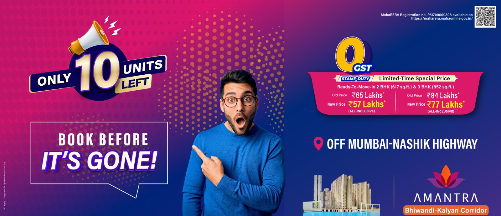 Being strategically located, Amantra rises elegantly from the curve of the Bhiwandi-Kalyan Corridor as a beacon of style and higher living. This integrated township is an inspired blend of urban tranquility and modern sophistication. Amantra is all set to offer you the finest living experiences away from all the hustle-bustle of the city, yet close to places of day to day conveniences and action.